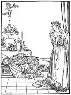 ![]() The once peasant queen drugs her husband, the king. Illustration from Grimm's Household Tales (1912), by R. Anning Bell. | |