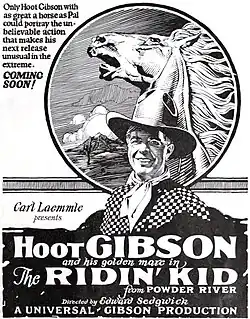 The Ridin' Kid from Powder River is a 1924 American silent Western film directed by Edward Sedgwick and starring Hoot Gibson. It was based on a novel by Henry Herbert Knibbs and produced and distributed by Universal Pictures.[1][2]