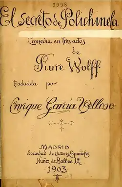 The Secret of Polichinelle (French: Le Secret de Polichinelle) is a 1903 comedy play by the French writer Pierre Wolff. A Boulevard farce it premiered at the Théâtre du Gymnase in Paris. It has been adapted into several different languages including English and Spanish. A 1904 American version was translated by Mildred Aldrich and staged at the Harlem Opera House.[1]