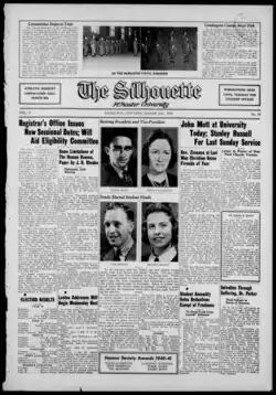 The Silhouette (founded circa 1930) is a student newspaper at McMaster University, located in Hamilton, Ontario, Canada. The masthead staff consists of the Editor-in-Chief, a recently graduated student from McMaster, and approximately 15 paid full-time students. The newspaper is published every Thursday during the academic year, and once during each summer month. The circulation is 3,000 copies per week. The paper contains six major sections; news, opinions, sports, features, arts and culture, and Humans of McMaster.