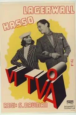 The Two of Us (Swedish: Vi två) is a 1939 Swedish drama film directed by Schamyl Bauman and starring Sture Lagerwall, Signe Hasso and Stig Järrel.[1] It was shot at the Centrumateljéerna Studios in Stockholm. The film's sets were designed by the art director Arthur Spjuth. It was followed by a sequel The Three of Us in 1940.