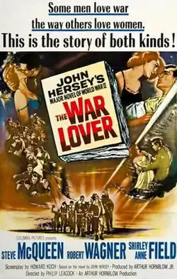 The War Lover is a 1962 British war film directed by Philip Leacock and written by Howard Koch, loosely based on the 1959 novel by John Hersey, altering the names of characters and events but retaining its basic framework. It stars Steve McQueen, Robert Wagner and Shirley Anne Field.[4]