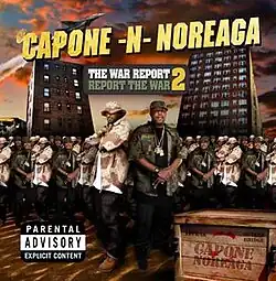 The War Report 2: Report the War is the fourth studio album by American hip hop duo Capone-N-Noreaga. It was released on July 13, 2010 via N.O.R.E.'s Thugged Out Militainment, Raekwon's Ice H20 Records, and EMI Records. Production was handled by Scram Jones, Alchemist, AraabMuzik, BT, Buckwild, DJ Green Lantern, Dreddy K. Amarae, Hazardis Soundz, Kyze, M3, Neo Da Matrix, SPKilla, Tha Bizness and Tony Heathcliff. It features guest appearances from Raekwon, Avery Storm, Busta Rhymes, Faith Evans, Imam Thug, Musaliny, Nas and The Lox.