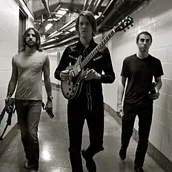 The trio played their first gig together at the DT's Down Under Club in Athens in May 2002[3] and started setting up gigs in New York once a month. Soon the band were sharing stages with bands such as Franz Ferdinand, Drive By Truckers and The Killers. Following a negative experience during a "development deal" with major label RCA Records in 2004,[4] the Whigs opted to record and release their first album independently.