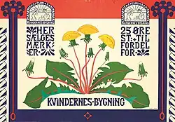 The 1895 Copenhagen Women's Exhibition was a great success. Not only was it appreciated in Denmark and beyond, it made a substantial profit of DKK 13,000.[1] Emma Gad presented the idea of using the money as start captal for an arganisation tasked with constructing a Women's Building in Copenhagen. The building was supposed to contain an assembly hall, reading room, restaurant, accommodation for women from the provinces, dwellings for single-self-supporting women and a medical clinic with female doctors. The idea was well received and a committee was set up with many of the same members who had played a key role in making the 1895 exhibition happen. The first meeting was held in September 1896.[1]