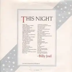 "This Night" is a song by Billy Joel released as the sixth single from his album An Innocent Man. The basis of the song's chorus uses the second movement of Ludwig van Beethoven's Pathétique Sonata.[1] Beethoven is credited as one of the song's writers on the sleeve of the album as "L.v. Beethoven". Joel has said in interviews that "This Night" was written about his brief relationship with supermodel Elle Macpherson, whom he dated just prior to second wife Christie Brinkley.