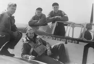 He flew missions in the Pacific until he returned to the United States in October 1942. In December 1942, he was assigned as a flight instructor with the 328th Fighter Group in Hamilton Field and in May 1943, he was appointed as commander of the 364th Fighter Squadron of the 357th Fighter Group at airfields in California and Wyoming. In December 1943, the group was deployed to England, where it was stationed at RAF Raydon and received the P-51 Mustangs. The group was assigned to Ninth Air Force as a P-51 tactical air support unit, before it was transferred to 66th Fighter Wing in the Eighth Air Force and moved to RAF Leiston.[6][3]
