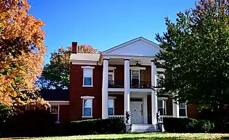 Thomas Nelson House, also known as Forest Hill, is a historic home located at Boonville, Cooper County, Missouri. It was built in 1843, and is a two-story, Greek Revival style brick dwelling with a rear ell. Symmetrical, flanking one-story wings were added about 1946. It has a side gable roof and features a two-story gabled, pedimented front portico, constructed about 1853. The house is in the George Caleb Bingham painting "Forest Hill the Nelson Homestead."[2]: 2