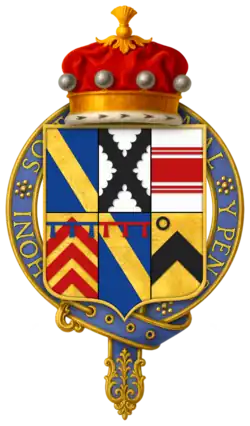 Quartered arms of Sir Thomas Scrope, 10th Baron Scrope of Bolton, KG