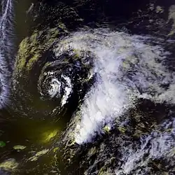 1. ^ The figures for maximum sustained winds and position estimates are rounded to the nearest 5 units (knots, miles, or kilometers), following the convention used in the National Hurricane Center's operational products for each storm. All other units are rounded to the nearest digit.[4]