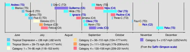 | Timeline of the 1997 Pacific hurricane season | |||||