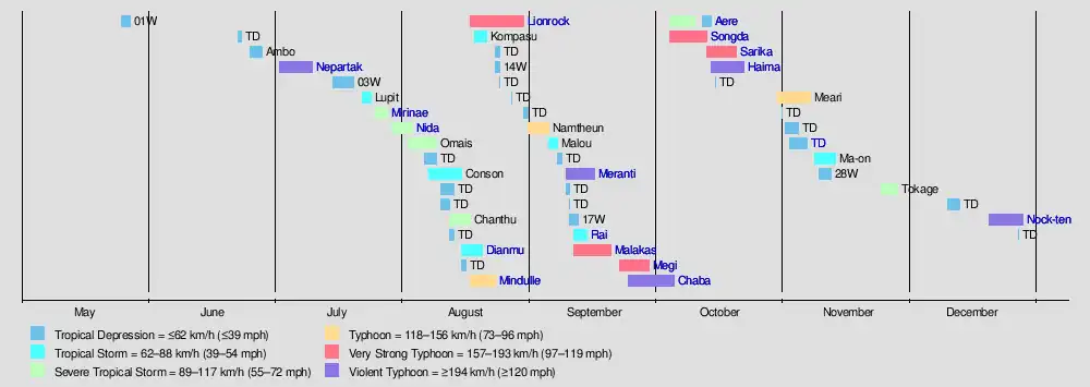 - 00:00 UTC — The 2016 Pacific typhoon season officially begins, though no storms would form until May.