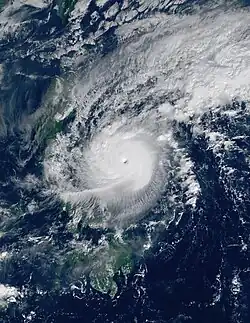 - At 19°30′N 128°24′E / 19.5°N 128.4°E — The JMA assesses that Nepartak (Butchoy) reached its peak intensity with 10-minute sustained winds of 110 knots (200 km/h; 130 mph) and a minimum barometric pressure of 900 hPa (26.87 inHg).[19]