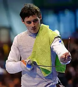 In the senior category, he made his breakthrough in the 2013–14 season. He won the Challenge Revenu after defeating in the final team Olympic champion Andrea Baldini.[4] At the 2014 European Championships in Strasbourg, he was defeated in the table of 16 by eventual gold winner James-Andrew Davis, and in the team event he helped Russia conquer a bronze medal. In the 2014 World Championships in Kazan he made his way to the semifinals, defeating along the way German champion Peter Joppich. He lost by a single hit to world no.1 Ma Jianfei of China and came away with a bronze medal. For this performance he was named breakthrough of the year by the Russian Fencing Federation.[5]