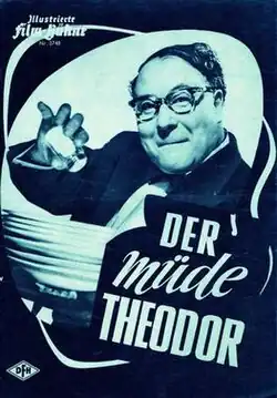 Tired Theodore (German: Der müde Theodor) is a 1957 West German comedy film directed by Géza von Cziffra and starring Heinz Erhardt, Renate Ewert and Peter Weck.[1] It was shot at the Göttingen Studios. The film's sets were designed by the art directors Dieter Bartels and Paul Markwitz.