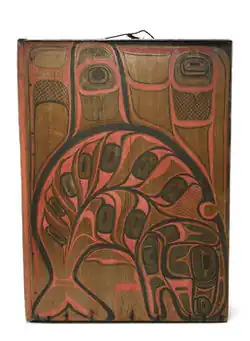 Kóok gaaw, box drum, late 19th century. Image is of a sea wolf (orca).