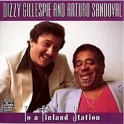 To a Finland Station is an album by trumpeters Dizzy Gillespie and Arturo Sandoval recorded in 1982 and released on the Pablo label.[1] Dizzy visited Finland 1982 to do a concert with the Finnish Studio Orchestra. By coincidence a Cuban group, led by Arturo Sandoval , was also appearing in Helsinki. Predictably, Dizzy got together with Arturo and in one all-night session that extended into the next morning, recorded this album