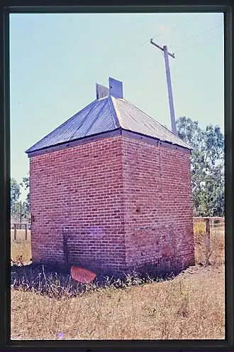 The bricks used in the construction appear to be commercially made, however there is some variation in the stretcher length between 220 and 225 millimetres (8.7 and 8.9 in) which could contradict this. There was a local brickworks located nearby at Stuart, but there was also a contemporary report about some farmers with brick-working skills and ample supplies of local clay. Investigation into this is continuing. The brick and iron construction would have involved considerable expense. A similar brick construction in the same area was quoted as costing £65. The willingness to invest considerable capital in the industry shows either a solid faith in its potential or a desperation to survive in harsh economic times.[1]