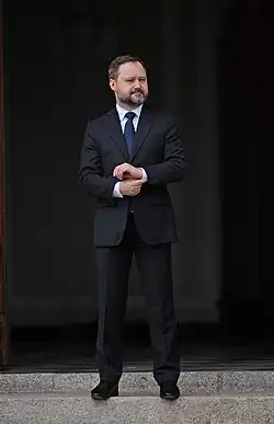 ![]() Tomasz Makowski in front of Krasiński Palace in Warsaw (2020) | |
