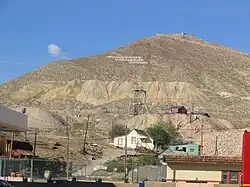 The area where the Tonopah Historic Mining Park is located was part of the mining operations done by several Tonopah mining companies, including Tonopah Mining Company, founded in 1901.[3][4] A commonly repeated lore of how silver was discovered in these mines was through the story of Jim Butler, who accidentally stumbled upon it when he was going to throw a rock (which happened to be a silver ore) to his mule. Through the help of his friend Tasker Oddie, Jim and his wife, Belle, would later found out the value of the ore, and with several others, would offer mine leasing rights for the area. Eventually, the Butlers would sell their mine leasing claim to the Tonopah Mining Company, though the company itself would eventually cease to operate by 1956.[3][5][6] The area where the mine used to be remains largely in place, and in 1992, the place was co-opted by the Tonopah Historic Mining Park Foundation as a preservation site for the Tonopah mining history.[4]