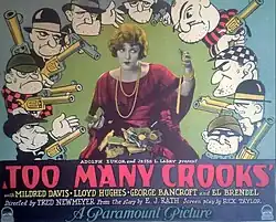 Too Many Crooks is a lost[2][3] 1927 American silent comedy film directed by Fred C. Newmeyer, written by E.J. Rath and Rex Taylor, and starring Mildred Davis, Lloyd Hughes, George Bancroft, El Brendel, William V. Mong, John St. Polis and Otto Matieson. It was released on April 2, 1927, by Paramount Pictures.[4][5]