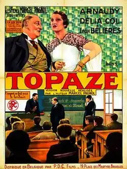 Topaze is a 1936 French comedy film directed by Marcel Pagnol and starring Alexandre Arnaudy, Sylvia Bataille and Pierre Asso.[1] It is based on the Pagnol's own 1928 play Topaze. A separate adaptation Topaze had been directed by Louis J. Gasnier three years earlier.