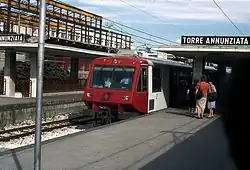 The station experiences a high volume of passenger traffic throughout the day and is one of the busiest along the line, due to its strategic location at the junction between Poggiomarino and Sorrento. All categories of trains stop here: direttissimi bound for Napoli Porta Nolana arrive on track 1, while direttissimi to Sorrento use track 2; accelerati heading to Napoli Porta Nolana stop or depart from track 3, while track 4 is used by accelerati to Poggiomarino. Track 5 is used by some accelerati to or from Napoli Porta Nolana that terminate or originate at this station.[3]