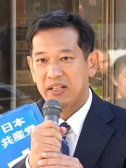 Tōru Miyamoto (宮本 徹, Miyamoto Tōru; born 22 January 1972) is a member of the Japanese Communist Party who served in the House of Representatives as a representative of the Tokyo proportional representation block[1] for 3 terms between 2014 and 2024.[2] Miyamoto was born in Miki City, Hyogo Prefecture.