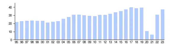 - ^ "UK: International tourist trips". Our World In Data. August 17, 2024.