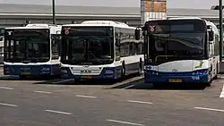 Buses are the country's main form of public transport. In 2017, bus passenger trips totaled approximately 740 million.[6] In 2009, 16 companies operated buses for public transport, totaling 5,939 buses and 8,470 drivers. Egged is Israel's largest bus company, and operates routes throughout the country.[7] Bus routes in some areas are operated by smaller carriers, the largest being the Dan Bus Company, operating routes in Gush Dan. Kavim is the next largest.