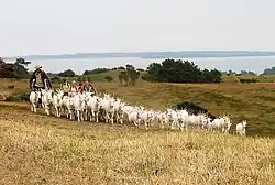 Today focused landscaping underlies the formation of the open plain-like grassland surrounding Trehøje, as well as other parts of the protected Mols Bjerge Hills. Tree growth, which would otherwise take over the land, is kept down partly through grazing by sheep, goats, cattle and horses, and partly through felling of upcoming trees, as well as felling of established wooded areas.