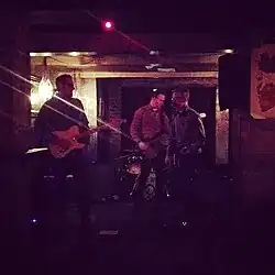Tri-State is a four-piece jangle pop and indie rock band from Maplewood, New Jersey, that formed in 2010, consisting of vocalist and guitarist Julian Brash, drummer Brady McNamara, bassist and vocalist Scott Stemmermann and guitarist and vocalist Tom Lucas.[1][2] Jeff Zelevansky (vocalist/guitarist) and Mason Rather (bass/vocals) were founding members of the band; both have since left the band. Tri-State's music is described as "jangle-pop" and "guitar-based rock'n'roll," and they draw comparison to the groups R.E.M., Dinosaur Jr., Eleventh Dream Day, and the artist Neil Young.[3] They self-released the six-track EP, entitled Tri-State, on May 24, 2016. A review of the EP by Jim Testa in Jersey Beat says "this is a terrific record [...] that neatly draws inspiration from Nineties alterna-rock without sounding dated or derivative. The guitars rumble and roar, the drumming always keeps things moving forward, and the vocals and lyrics bring a perspective you just don't find in younger bands."[3] Independent Clauses writes "Tri-State's tunes unfold in pleasing ways[,] creat[ing] an ominous mood that builds and builds," adding that "if you're into '90s indie-rock or mature songwriting that appreciates with multiple listens, give [Tri State] a spin."[4] Tri-State signed with Mint 400 Records in 2014.