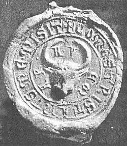 His typarium is one of the most notable examples of seal usage of aristocrats in medieval Hungary. He inherited his seal from his father, depicting head of an ox, while Tristan added letters to his seal in order to distinguish himself from his distant relatives, the Arnold branch of the clan.[3] In order to protect his possessions at Muraköz (today: Međimurje, Croatia), he built a timber fortification, and the nearby village was still called as Terestyéntornya (lit. "Tristan's Tower") in the 15th century.[4]