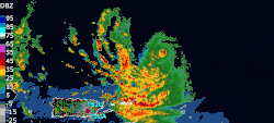 ![]() Erin at peak intensity north of the Leeward Islands on August 16 | |