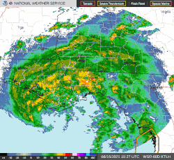 Tropical Depression Fred just east of Atlanta on August 17