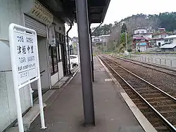 The station has one side platform serving a single bidirectional line on a reversing headshunt. The station is staffed.