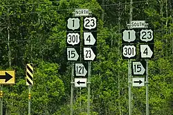 By June 1960, SR 15 was shifted eastward, onto a completely different alignment. It had two different concurrencies with US 1/SR 4: from the Florida state line to Racepond and from Baxley to South Thompson. In Augusta, SR 10 was shifted off of SR 4 and onto Gordon Highway. SR 21 was extended onto the SR 4/SR 12 concurrency on Twiggs Street and 7th Street. SR 21 reached its northern terminus at Broad Street. US 25 was shifted off of Broad Street and onto Gordon Highway, which was extended to the South Carolina state line. Its former path was redesignated as part of US 25 Bus.[24][25] By June 1963, SR 121 was placed on a concurrency from Folkston to Racepond.[25][26] By the end of 1965, a western bypass of Waycross was built from US 82/SR 50 west-northwest of the city to US 1/US 23/SR 4 northwest of it. SR 21 was extended west-northwest on US 25 Bus./SR 28 (Broad Street) and followed the business route to the South Carolina state line. SR 121 was extended on Gordon Highway from the US 25/SR 21/SR 121 interchange to the state line. Also, the intersection of Gordon Highway and Broad Street was converted into an interchange.[26][27]