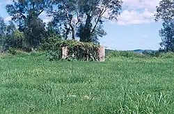 In 1904, a portion of Ulgundahi Island was gazetted as an Aboriginal reserve under the control of the Aboriginal Protection Board (APB) and in 1907 the whole of the island was included in the Reserve. The name Ulgundahi Island, is to have come from a Yaegl word meaning "shape of an ear". Several families already resided on the island and it was reported in 1904 that eight acres be set aside for a Reserve and that supplies of roofing iron and tanks should be delivered immediately.[2] Concerns by European residents had been expressed about Aboriginal camps on the fringes of nearby townships and in 1908 the APB relocated families from Ashby onto Ulgundahi Island increasing the resident population to 60. In 1909, Aboriginal people from Harwood Island fled to Ulgundahi Island due to a European farmer burning down the camp of more than 40 bark dwellings.[3][1]