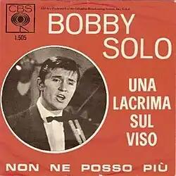 "Una lacrima sul viso" (Italian for A Tear on your Face) is a song composed by Lunero and Mogol and performed by Bobby Solo. The song premiered at the fourteenth Sanremo Music Festival, with a double performance by Solo and Frankie Laine, who proposed an English version of the song with the title "For Your Love".[1] The song entered the final, but Solo was affected by laryngitis. Unable to sing live, he sang with playback, being subsequently disqualified.[1]