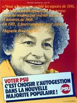 1981 presidential election poster for PSU candidate Huguette Bouchardeau.