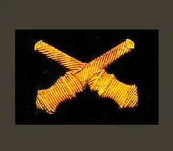 Not until 1920 would the Red Army have its own branch insignia and so innumerable unofficial designs were worn, if not tsarist symbols on caps. These were sometimes based on the branch insignia designs of the old Imperial Army, such as the machine gun worn on the shoulder boards of imperial machine gunners, but now worn on the upper left sleeve in embroidered gold wire.[51]