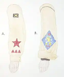 Above the left cuff, cloth or braid red or yellow wound stripes were sometimes worn; this was a continuation of those introduced in 1916.[60]