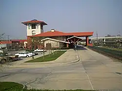Union Station, also called the Meridian Multi-Modal Transportation Center, is an intermodal transportation center in Meridian, Mississippi. The station is located at 1901 Front Street in the Union Station Historic District within the larger Meridian Downtown Historic District, both of which are listed on the National Register of Historic Places. Consisting of a new addition and renovated surviving wing of the 1906 building, Union Station was officially dedicated on December 11, 1997. It is a center of several modes of passenger transportation, including Amtrak train service on the Norfolk Southern rail corridor, Greyhound, and other providers of bus services.