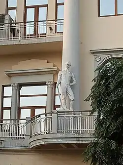 The building of the Union of Composers of Azerbaijan was built in 1912 as a 3-storey property at 27 Molokanskaya Street (now 55 Khagani Alley).[2] Since 1922, the Palace of Culture of Mining Workers has been located here. In 1924, sculptor Stepan Erzya was commissioned to make sculptures for the facade of the building. The statues on the façade are placed in 3 horizontal directions.[3]