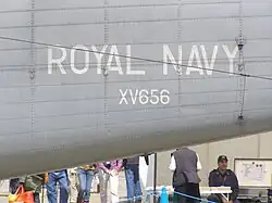 The registration numbers are normally carried in up to four places on each aircraft; on either side of the aircraft (typically its fuselage) on a vertical surface, and on the underside of each wing. The under-wing registration numbers, originally specified so that in case of unauthorised low flying, affected personnel could report the offending aircraft to the local police force, have not been displayed since the 1960s, as by then jet aircraft speeds at low level had made the likelihood of a person on the ground being able to read, and thus report them, increasingly remote. The registration number on each side is usually on the rear fuselage, but this can vary depending on the aircraft type, for instance the delta winged Gloster Javelin had the registration number on the forward engine nacelle, and the Avro Vulcan had the registration number on its tail fin. Helicopters have only carried registration numbers on each side, either on the tail-boom or rear fuselage.