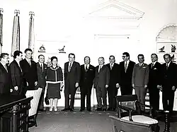 The Yugoslav diplomacy dealt successfully with the shifts in the focus of American policy from Kennedy's "Grand Design," Johnson's "building bridges" appeal, Nixon's personal diplomacy, to Carter's focus on the human rights.[10] Yugoslavia pursued a highly independent foreign policy and maintained leadership of the international Nonaligned movement that created a competing ideology and challenged the two superpowers.[10]