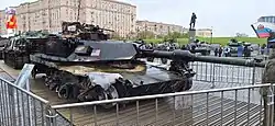 A captured US-supplied M1 Abrams main battle tank in Ukrainian service on display at Moscow's Victory Park on Poklonnaya Hill, 2024
