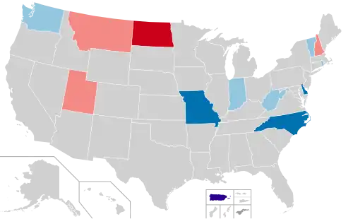 1992 Rhode Island gubernatorial election1992 Delaware gubernatorial election1992 Indiana gubernatorial election1992 Missouri gubernatorial election1992 Montana gubernatorial election1992 New Hampshire gubernatorial election1992 North Carolina gubernatorial election1992 North Dakota gubernatorial election1992 Utah gubernatorial election1992 Vermont gubernatorial election1992 Washington gubernatorial election1992 West Virginia gubernatorial election1992 Puerto Rico gubernatorial election