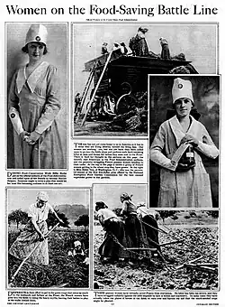 The Department of Labor created a Women in Industry group, headed by prominent labor researcher and social scientist Mary van Kleeck.[59] This group helped develop standards for women who were working in industries connected to the war alongside the War Labor Policies Board, of which van Kleeck was also a member. After the war, the Women in Industry Service group developed into the U.S. Women's Bureau, headed by Mary Anderson.[59][60]