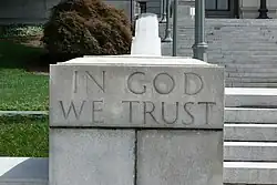 United States national motto, In God We Trust, in ornamental stonework at the Pennsylvania State Capitol